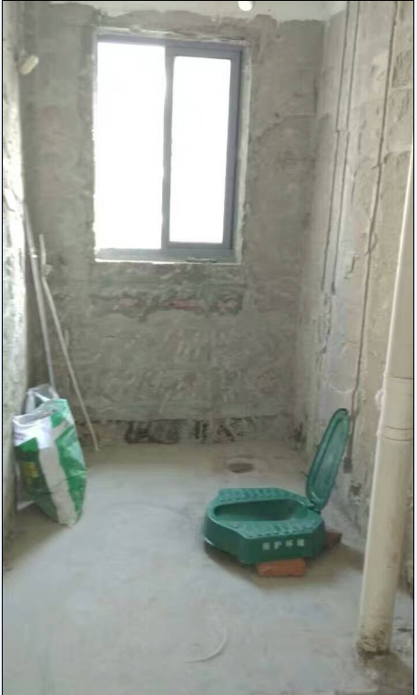 厨卫墙地砖铺贴完成后张贴水电改造字贴,地面找平平整度及强度符合要求,水路已经做打压试验达到标准水压值。